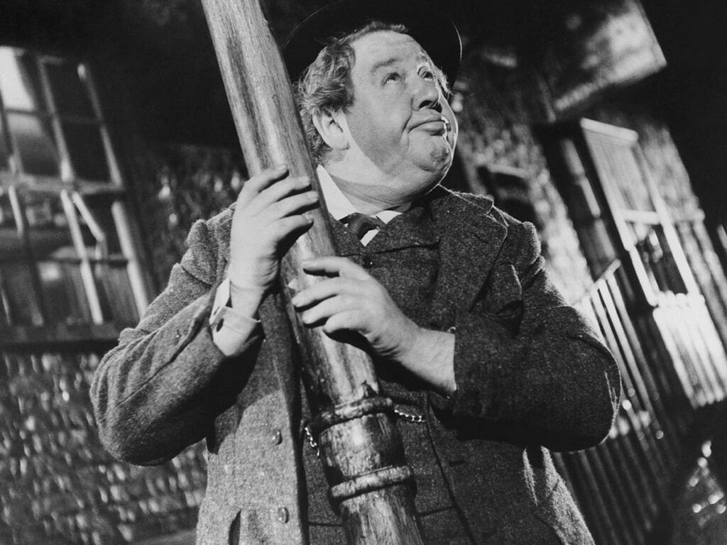 Lean, who is mainly remembered for epics about bridges, deserts, and snow-covered steppes, had a gift for domestic drama (and, indeed, for sharp-edged comedy) that is practically unheralded beyond his heartbreaking Brief Encounter. It’s surprising that his Charles Dickens adaptations don’t engender the same level of critical adulation, and Hobson’s Choice (though based on a popular play) seems of a piece with those films, with Laughton’s delightfully nasty Hobson as vivid a grotesque as the blustering Mr. Bumble and the loutish Bill Sykes in Oliver Twist. Laughton’s performance hits the exact right note of bullying patriarchy, with just a touch of the immature brat, a dash of almost feminine vanity (Laughton’s hands dance around mincingly as if to underline the delicacy under his massive girth) and the secret insecurity that all bullies have deep down. He’s a fascinating walking paradox, his gigantic belly puffed out like some peacock, his lips curled as if bored by everyone, and the slump of his shoulders arousing pity; for all his talk of having a “stiff neck with pride”, he’s basically a little man who thinks he’s a big one.